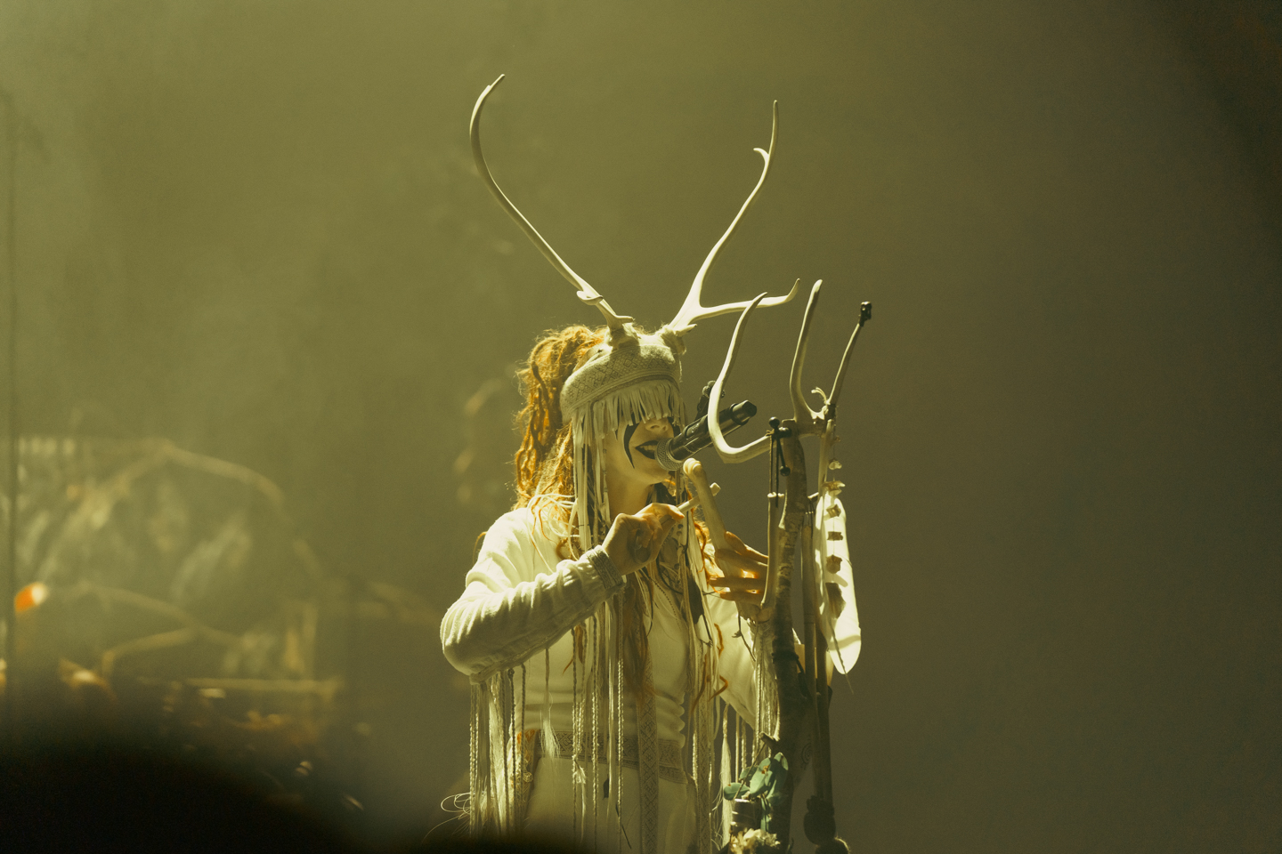 The venue itself, with its elegant design and acoustics, was the perfect canvas for Heilung’s unique brand of neofolk music. The stage was adorned with an array of props, ranging from animal skulls to shamanic symbols, creating an ambiance that set the tone for the ritualistic nature of the evening.