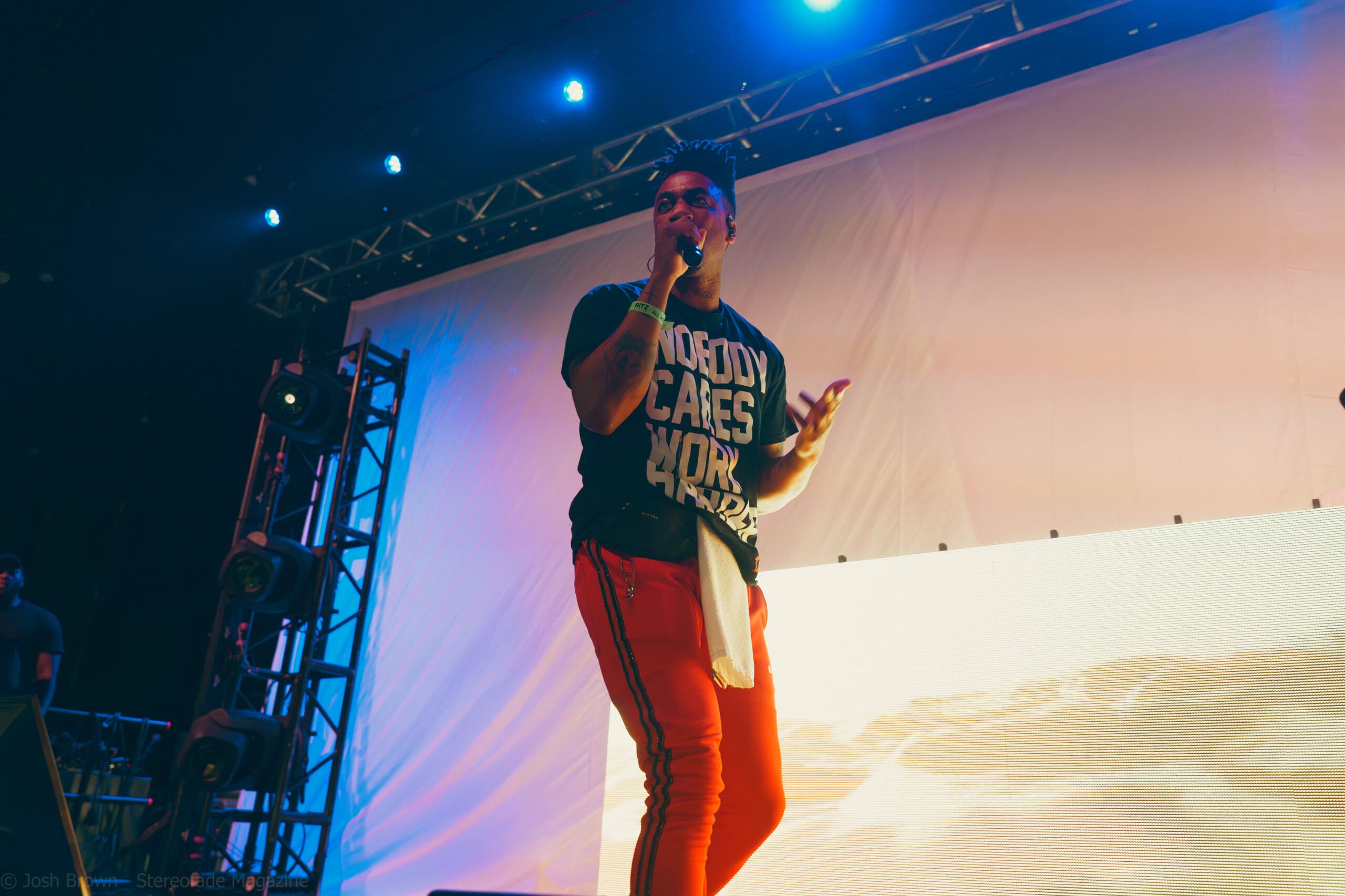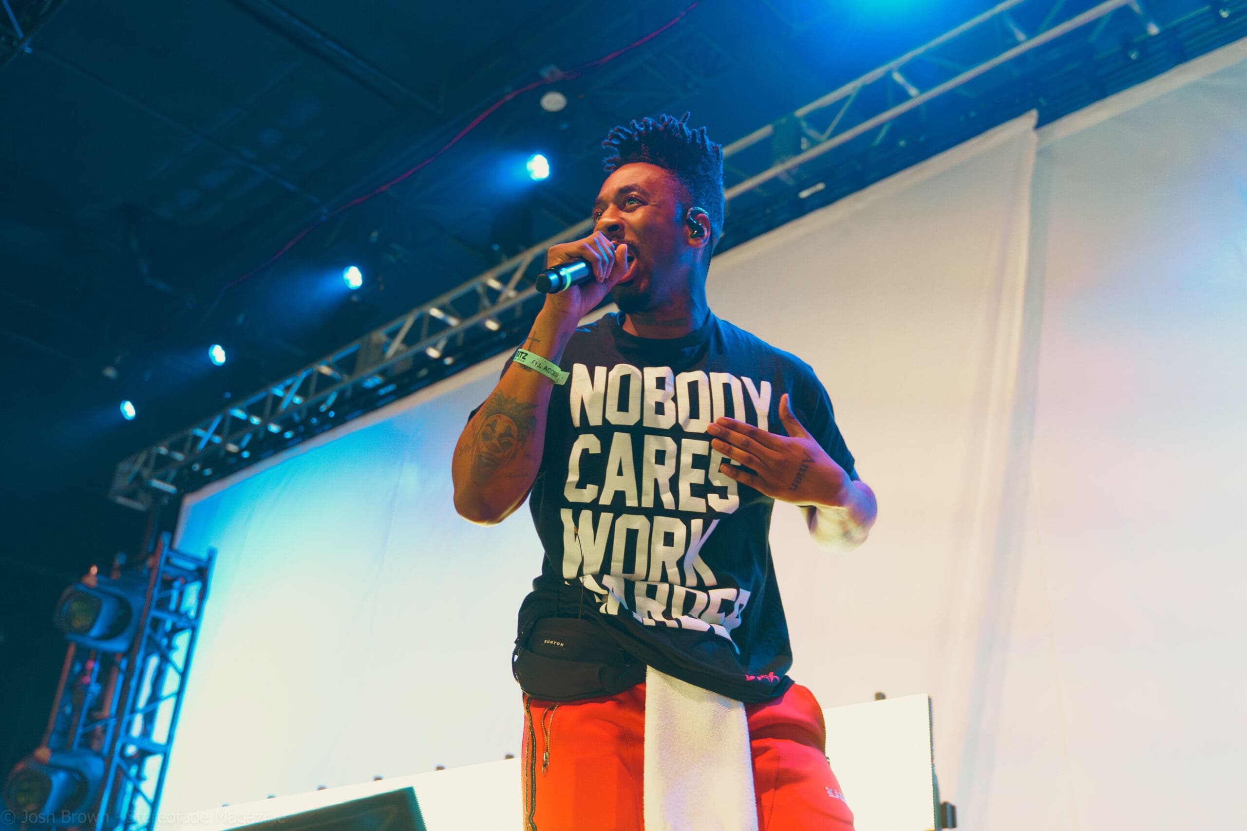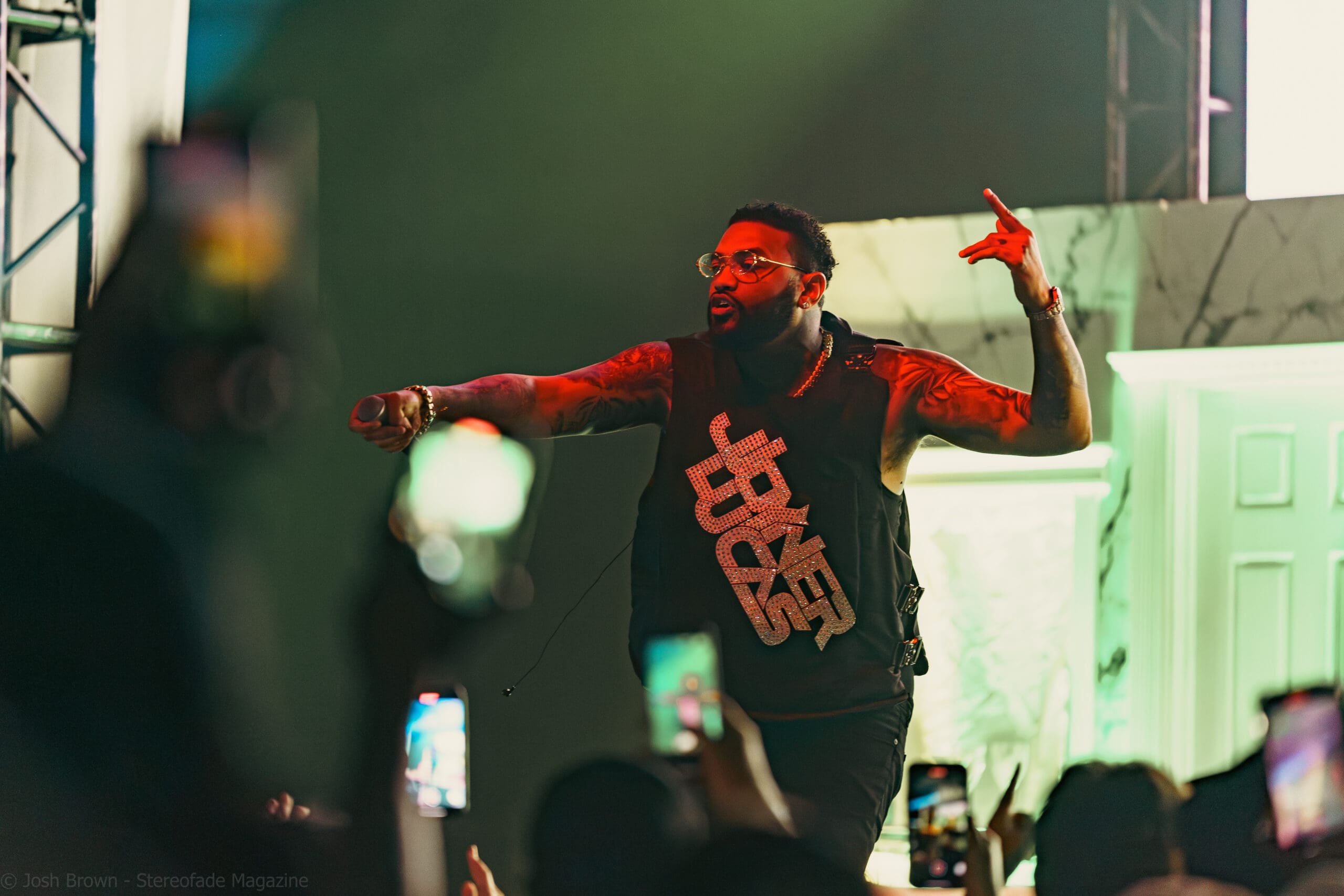 Joyner’s stage setup was uniquely designed, featuring a bed/mattress that added a personal and intimate touch to his performance. Dressed in his signature vest with his name on it, Joyner’s minimalist setup ensured that the focus remained on his performance, allowing his lyrics and delivery to shine through. This created an intimate yet high-energy experience. Joyner also engaged with the audience, sharing stories behind his songs and expressing heartfelt gratitude for their support. He even came into the crowd and performed “I Love”, surrounded by his most diehard fans.