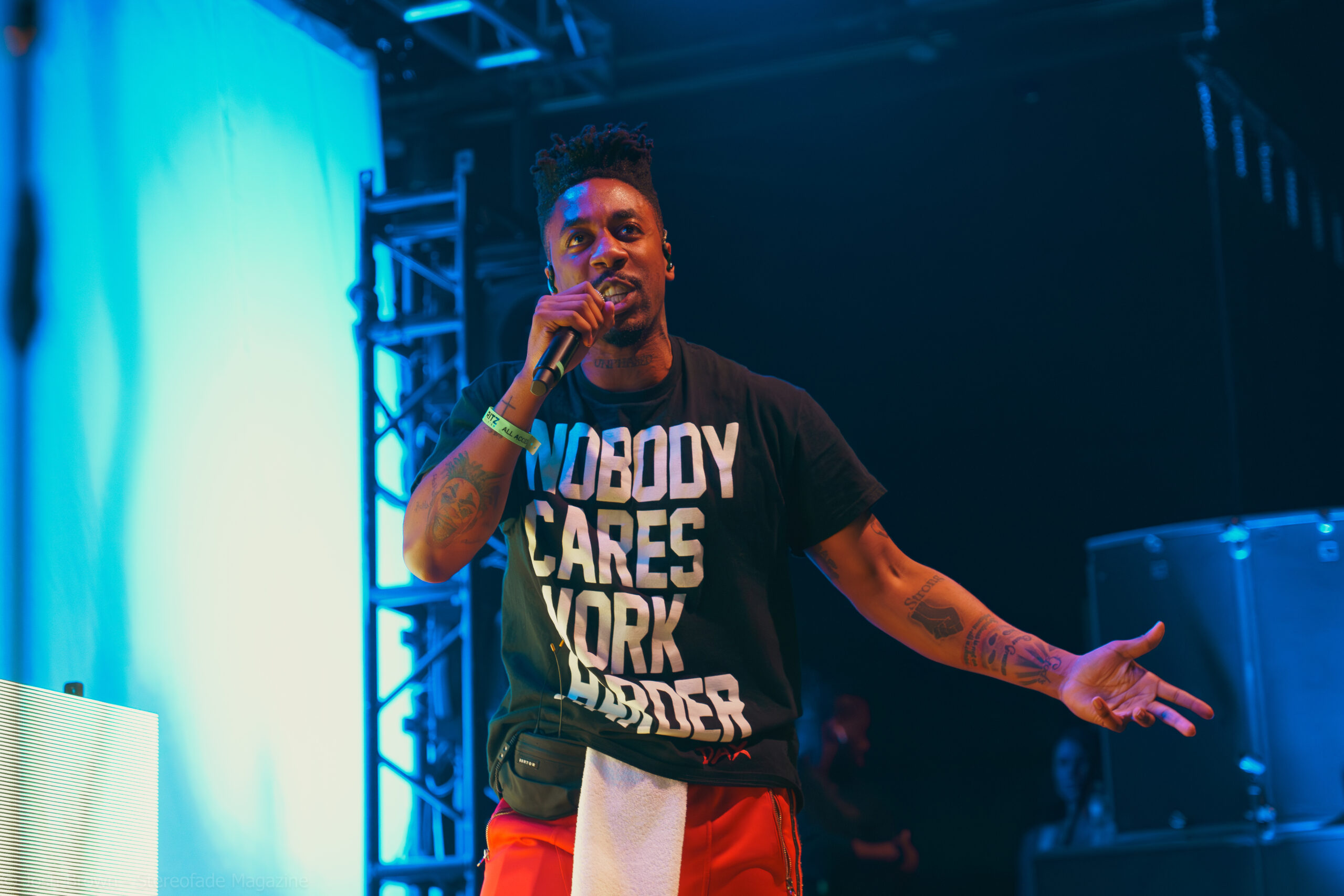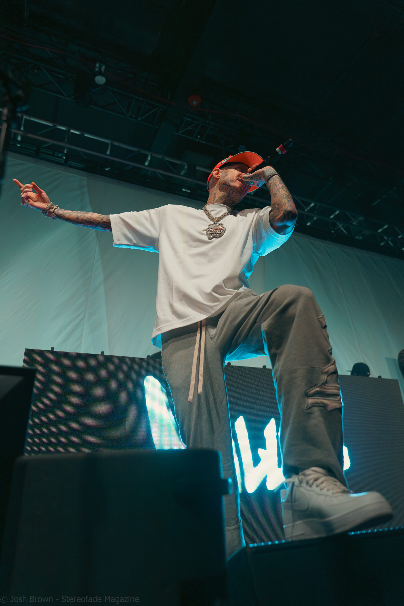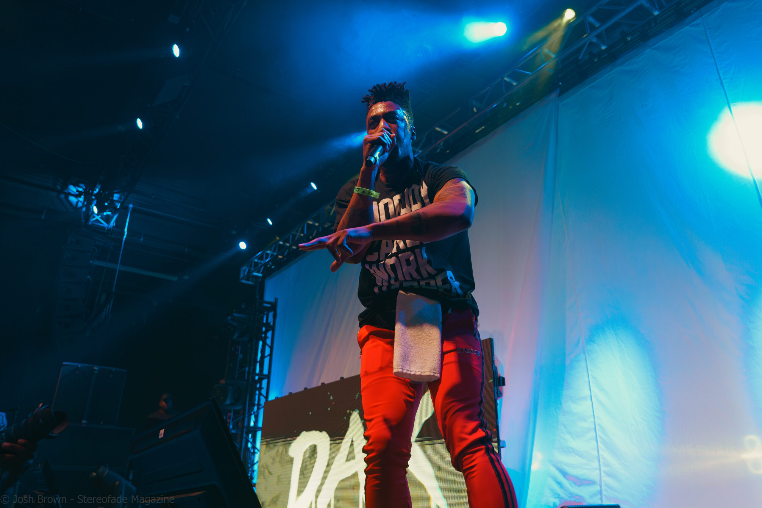 Joyner’s stage setup was uniquely designed, featuring a bed/mattress that added a personal and intimate touch to his performance. Dressed in his signature vest with his name on it, Joyner’s minimalist setup ensured that the focus remained on his performance, allowing his lyrics and delivery to shine through. This created an intimate yet high-energy experience. Joyner also engaged with the audience, sharing stories behind his songs and expressing heartfelt gratitude for their support. He even came into the crowd and performed “I Love”, surrounded by his most diehard fans.