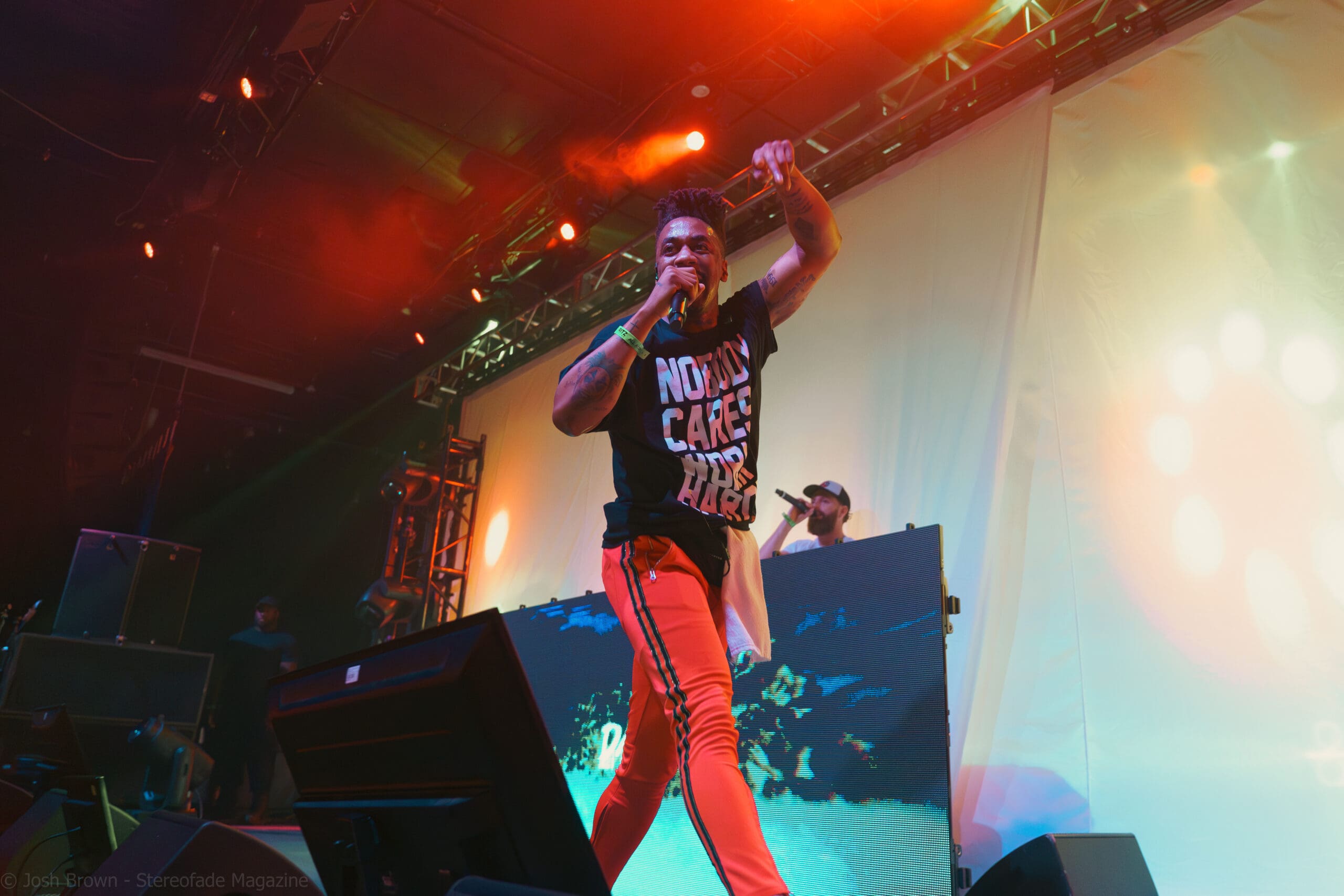 Joyner’s set featured several sitcom-esque skits that were displayed throughout. The first skit set the stage for the story of the opening song, and the album’s theme as a whole. When Joyner Lucas finally took the stage, the atmosphere was electric. Joyner’s intricate wordplay and emotional delivery resonated deeply with the crowd. Tracks like “ADHD” and “I Love” showcased his storytelling prowess, while “Best For Me” and “Ramen & OJ” had everyone vibing and singing along.